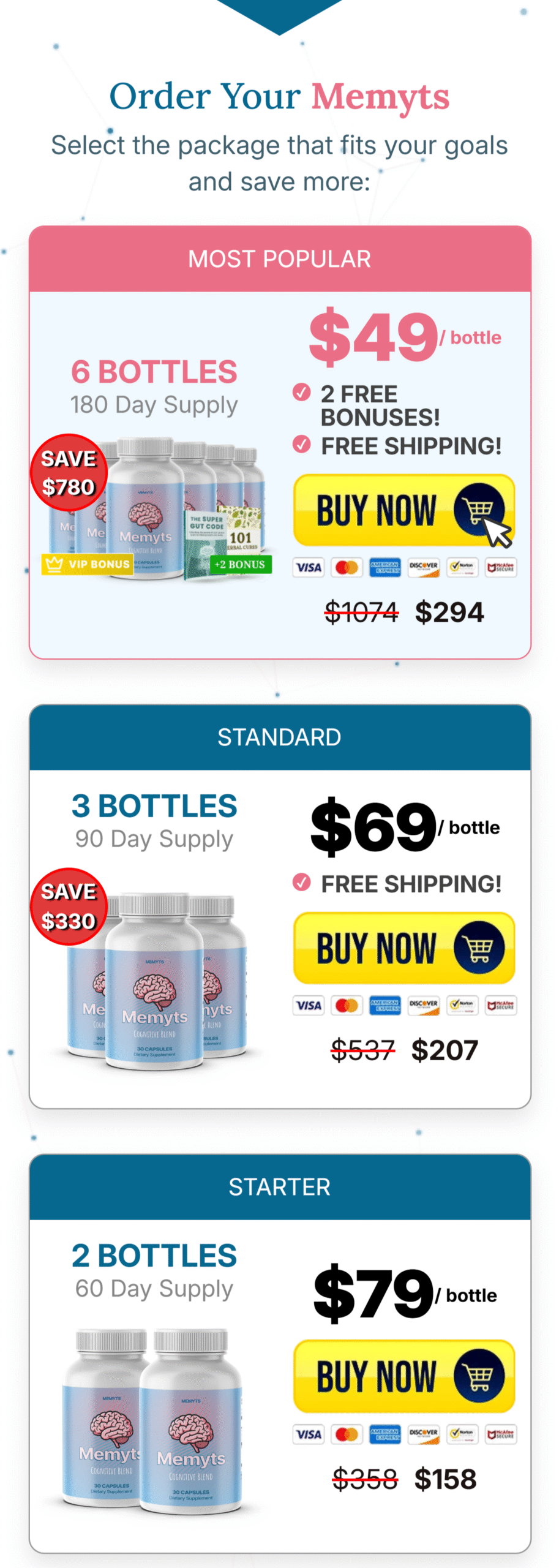 👉 If you’re tired of feeling stuck — tired, forgetful, and left behind — give yourself the chance to feel alive againMemyts’ 6-bottle package is the smart choice: biggest discount, free shipping, and all the bonus guides to help you get results even faster.